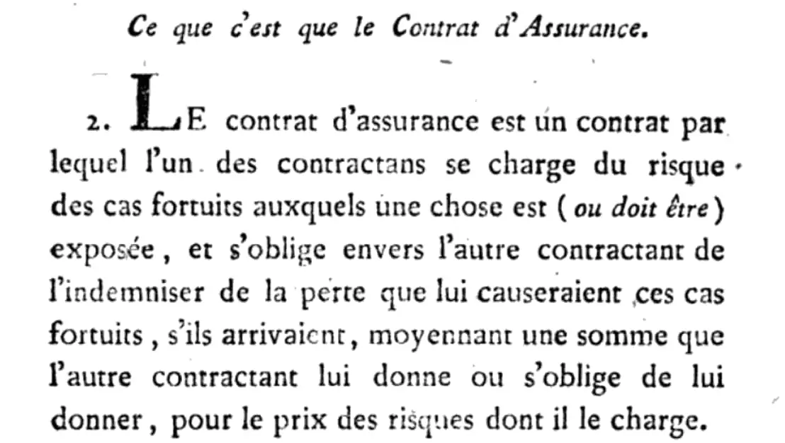 « L’assurance est un contrat par lequel l’un des contractants se charge du risque des cas fortuits. » – Robert-Joseph Pothier, Traité du contrat d’assurance, 1777